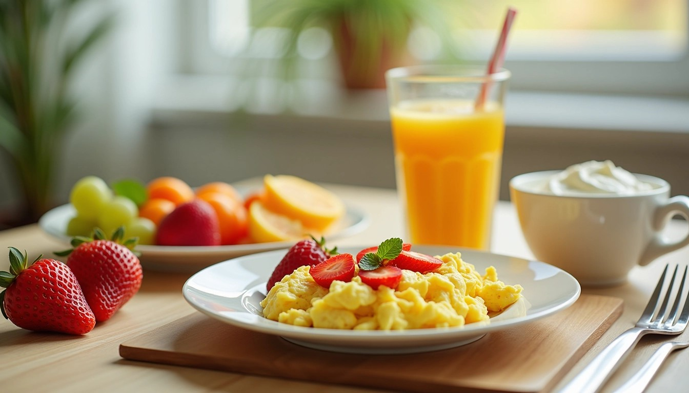 아침 식사로 스크램블 에그나 그릭 요구르트 같은 단백질이 풍부한 음식을 추천한다. 이렇게 하면 하루의 시작을 건강하게 맞이할 수 있으며, 체중 감량에도 긍정적인 영향을 미친다.