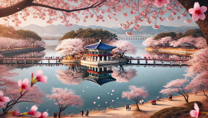 - 석촌호수 (서울 송파구) - 호수를 따라 핑크빛 벚꽃이 둘러싸며, 밤에는 조명과 함께 더욱 로맨틱한 분위기!